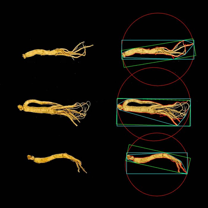 中药材形态解析:基于先进视觉算法,在3秒内自动完成目标识别与分割,精准解析中药材轮廓、直径、长度、宽度、周长、颜色、数量等关键表型性状。